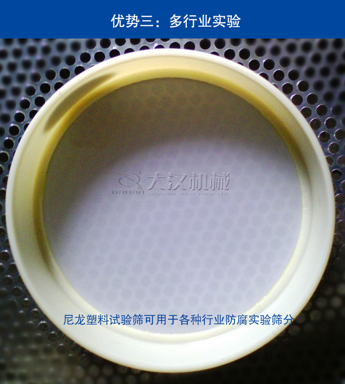 尼龍塑料試驗篩采用PVC加厚塑料邊框、防腐蝕尼龍網材質,它主要于不能和金屬接觸的物料,避免物料因遇到金屬而造成的化學反映。篩孔精細,廣泛用于多行業(yè)的實驗篩分工作。下面小編就為您說一說尼龍塑料試驗篩在實驗中有什么優(yōu)勢?
