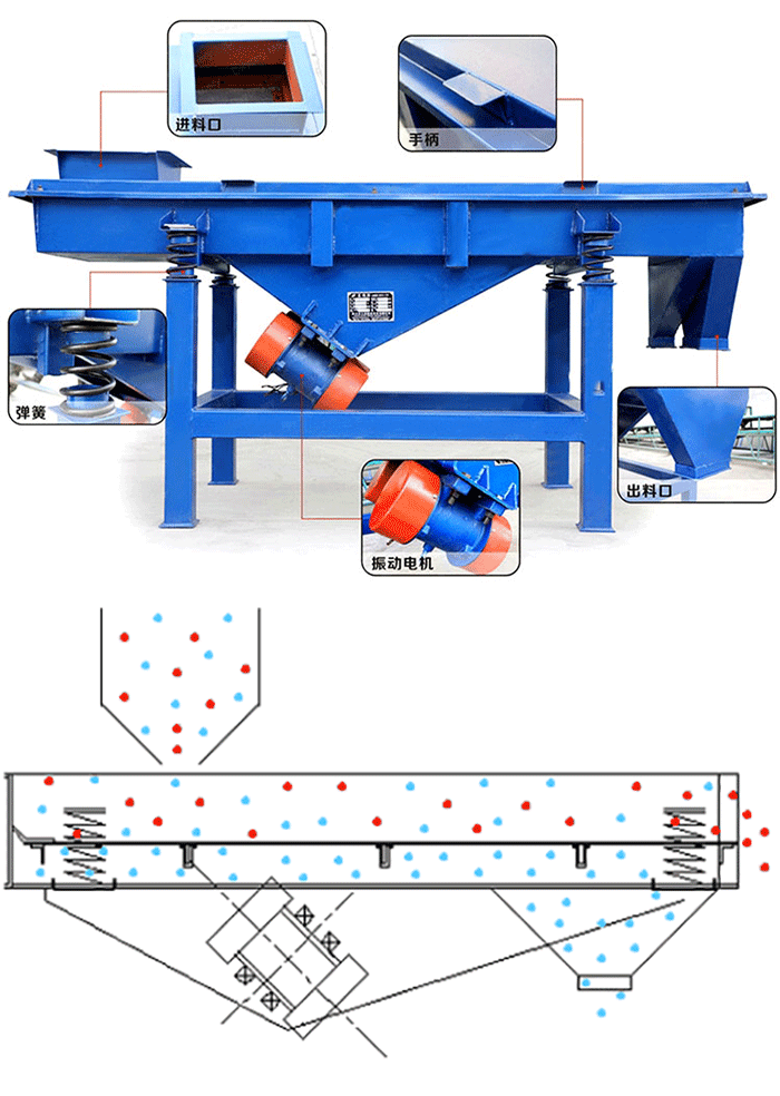 直線振動篩是我們篩分工作中的常用設(shè)備,直線振動篩廣泛應(yīng)用于化工、食品、塑料、醫(yī)藥、冶金、玻璃、糧食、化肥、磨料、陶瓷等行業(yè)中干式粉狀或顆粒狀物料的篩分,篩分精度高,處理量大,結(jié)構(gòu)簡單,耗能少,噪音低,篩網(wǎng)使用壽命長,密封性好,極少粉塵溢散,維修方便,可用于流水線生產(chǎn)中的自動化作業(yè)。