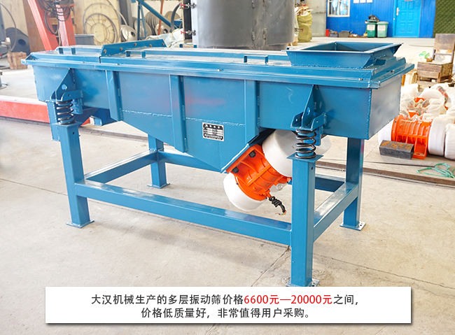 隨著生產(chǎn)節(jié)奏的加快,單層直線振動篩已經(jīng)完全無法滿足生產(chǎn)需求,多層直線振動篩就是由直線振動篩改造升級的一款高效篩分設(shè)備。多層直線振動篩可以將物料分級為多種規(guī)格,實現(xiàn)一次投料出多種規(guī)格物料,可以有效節(jié)省時間成本。由于不同廠家生產(chǎn)的多層直線振動篩型號、生產(chǎn)工藝等不同,所以就導致市場上多層直線振動篩價格不一,那么一臺多層直線振動篩一般都多少錢呢?大漢小編將為您解答: