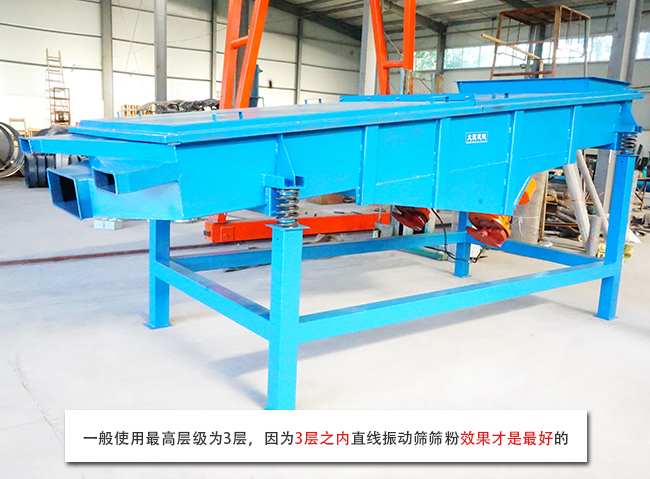 多層直線振動篩主要用于粗碎或中碎之前的預(yù)先篩分,單層直線線振動篩適合小戶型用戶,篩分產(chǎn)量比較低的用戶,多層直線振動篩適合對產(chǎn)量需求比較大的用戶,一般使用最高層級為3層,因為3層之內(nèi)直線振動篩篩粉效果才是最好的,3層以上的直線振動篩離振動電機(jī)會比較遠(yuǎn),篩分效果就會變差
