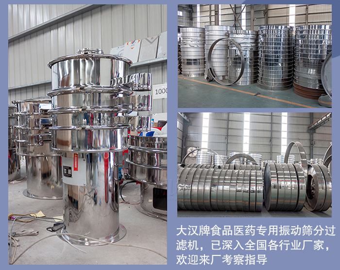目前,大漢牌食品醫(yī)藥專用振動(dòng)篩分過濾機(jī),已深入全國各行業(yè)廠家,歡迎來廠考察指導(dǎo),由您的建議我們會(huì)做的更好,大漢振動(dòng)篩-致力于解決各種篩分難題,電話0373-2682333 聯(lián)系人:王現(xiàn)峰、24小時(shí)服務(wù)手機(jī)15893808811隨時(shí)恭候您的來電。