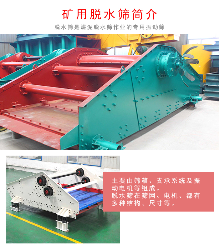礦用脫水篩是煤泥脫水作業(yè)的專用振動篩,它廣泛適用于選煤、電力、選礦、制鹽、化工、制糖等行業(yè)中的細(xì)粒度干式、濕式篩分煤泥回收,過濾隔粗、壓濾隔粗、其他極細(xì)物料的脫水、過濾隔粗脫水、脫介、脫泥回收等工藝中。