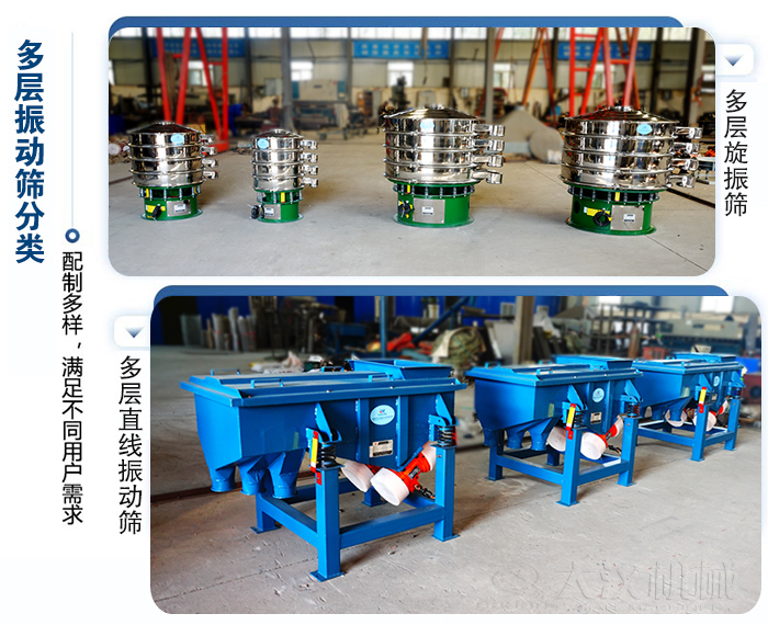 多層振動篩可對粉狀、顆粒狀物料的篩選和分級,廣泛用在塑料、磨料、化工、醫(yī)藥、建材、糧食、炭素、化肥等行業(yè).
