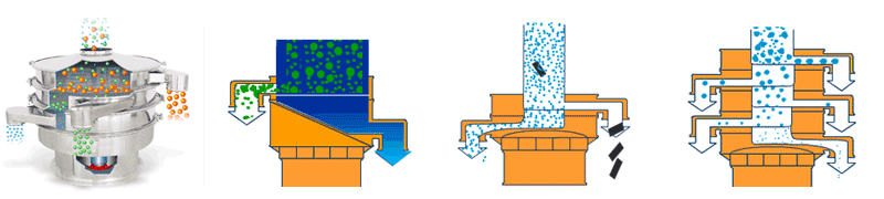 | 應(yīng)用 | 要用于物料原料的篩分和成品的最終生產(chǎn)檢驗(yàn),可以去除產(chǎn)品中的結(jié)塊和污染物,一次操作最多可提供5級分級。 | 適合高粘性、高靜電細(xì)粉,篩分精度可以提高80%以上,產(chǎn)量提高2-5倍。 | 模擬人工篩分的動(dòng)作,產(chǎn)生了水平和投擲的三維滾動(dòng)運(yùn)動(dòng),適用于500目以內(nèi)的細(xì)粒狀物料,篩分精度提高了90-95%,產(chǎn)量是圓形振動(dòng)篩的5-10倍。 | 適合一般的粗略篩分或除雜,的進(jìn)、出料口設(shè)計(jì)在同一垂直方向上,這樣會(huì)加快物料的排料速度,處理量是普通圓形振動(dòng)篩的2-5倍。 | 經(jīng)常用在液體過濾行業(yè),可去除液體或懸浮物中存在的不需要的顆粒,當(dāng)然也是可以作為粉末除雜。可用在處理量較小的工廠或小型作坊。 |
